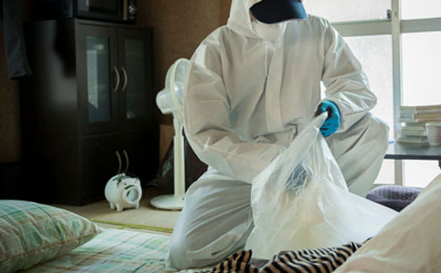 立ち入りが制限されていない限り、どんな現場でも対応させて頂いております。孤独死のうえに、ゴミ屋敷のケースやどれだけ酷い臭いの状態でも対応させていただきます。